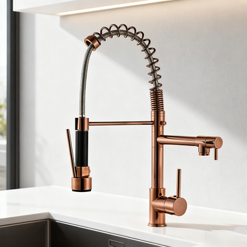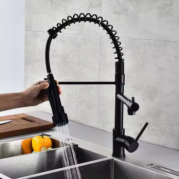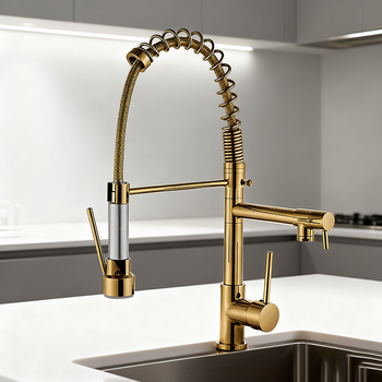 Robinet de cuisine à tirette de qualité supérieure Conception de bec à ressort Double pulvérisation Rotation à 360 ° Construction en laiton massif Finitions à couleurs multiples