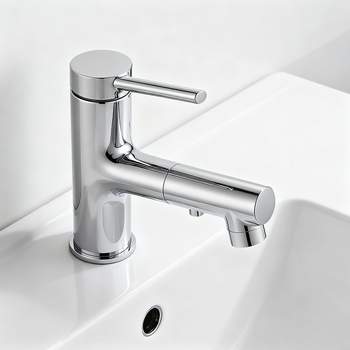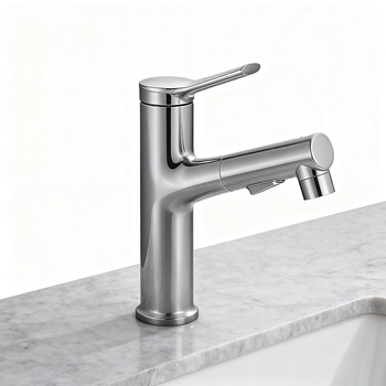 מסוגנן למשוך את ברז האגן מוברש ידית יחיד ניקל מוברש עם spout extendable עבור חדרי אמבטיה עכשוויים