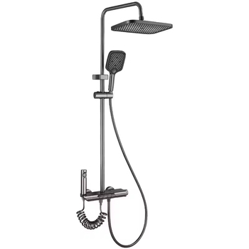 ברז מקלחת גשם שחור בלחץ גבוה להגדיר עם אקדח כף יד ורסס לרחצה יעיל