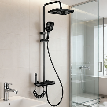 מקלחת גשם שחור עמיד עם מרסס כף יד וריסוס אקדח תרסיס אידיאלי עבור חדרי אמבטיה מודרניים