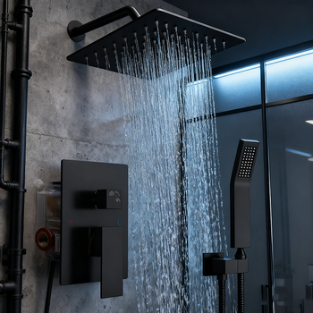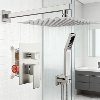 ชุดฝักบัวอาบน้ำแรงดันสูงระบบฝักบัวแบบใช้มือจับแบบสี่เหลี่ยมควบคุมอุณหภูมิได้สำหรับการปรับปรุงห้องน้ำ